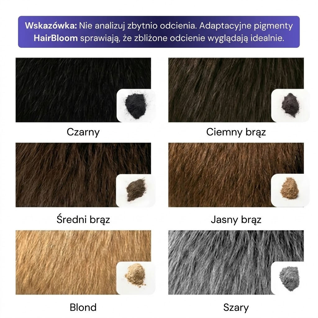 Całkowicie niewykrywalny, chyba że sam o tym powiesz. HairBloom™ bezproblemowo łączy się z Twoimi naturalnymi włosami, nawet w bardzo jasnym świetle lub przy patrzeniu z bliska. Tekstura mikrowłókien idealnie naśladuje naturalną gęstość włosów. Produkt nie zostawia kredowego wykończenia ani sztucznego połysku — większość osób nawet nie pomyśli, że czegoś używasz.